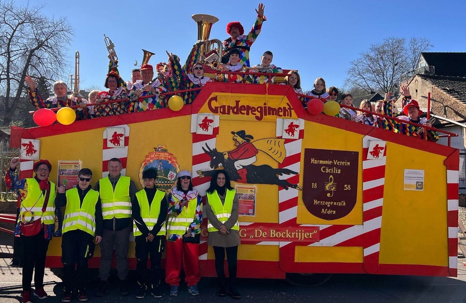 Das zweite Jahr in Folge durften wir den Wagen der 1. Großen KG "De Bockrijjer" von 1928 e.V. auf dem Merksteiner Karnevalszug nutzen, was uns viel Lauferei ersparte.